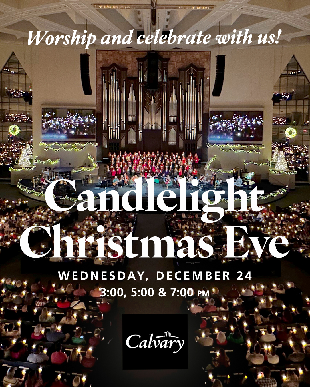 Our Candlelight Christmas Eve services will be filled with joyful worship featuring the Calvary choir and orchestra, along with favorite carols, glowing candlelight, and Pastor John Munro’s message of hope, “Believe Truth: Receive Grace.”